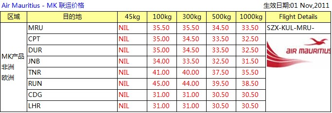 AK亚洲航线11月中东非洲最新国际空运价格查询,深圳大智通第一时间了解国际空运价格行情,让您不必亏在运费上。AK 深圳始发 KUL联运中转中东非洲优惠运价,以下为深圳头程AK航班,KUL接驳EY GF SA MK,一单到底无需换单!订舱热线:400-0755-028