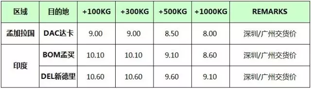 以上价格为货交广州/深圳指定仓库价格,还可接受厦门仓库收货,价格在以上运价基础上加¥0.50/KGS。