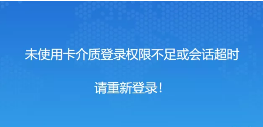 如果以用户名登录尝试访问IC卡权限页面,会提示“未使用卡介质登录权限不足或会话超时请重新登录!”,如下图: