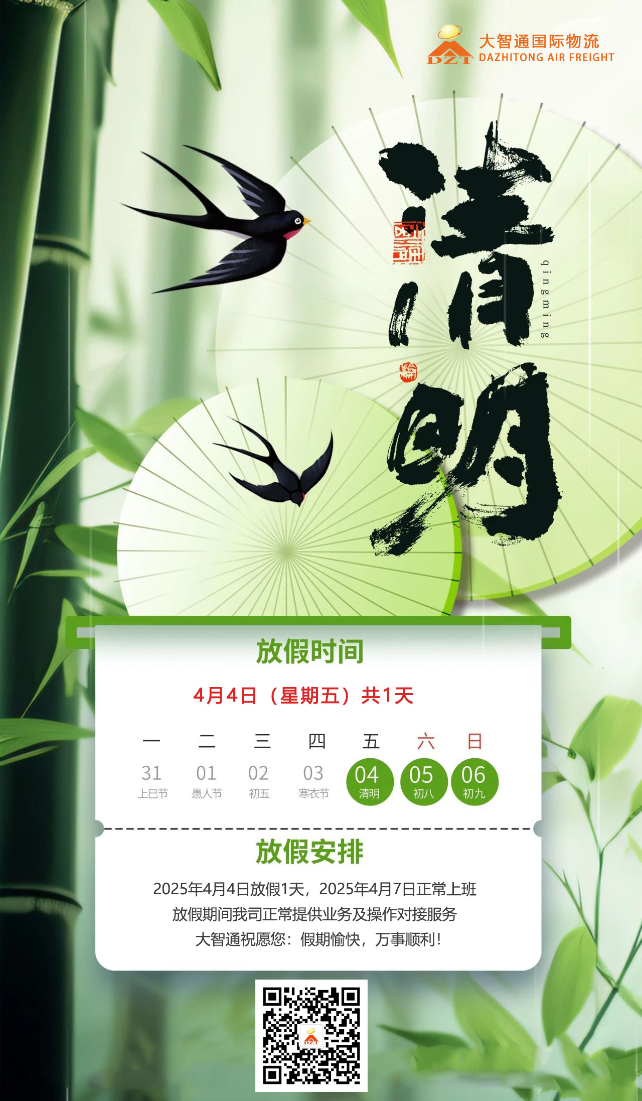 深圳仓&香港仓放假安排:4月4日(周五,清明当日):放假一天;